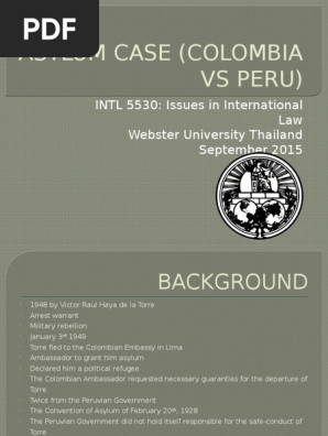 Asylum Case Colombia Vs Peru Refugee Asylum Seeker